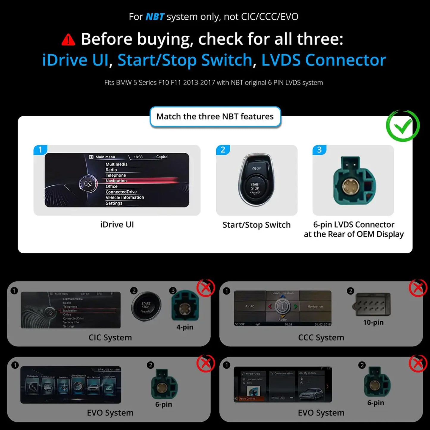 - Tailored Perfection. Exclusively designed for 2013-2017 BMW 5 Series (F10/F11) with NBT system. This stereo fits perfectly into your original dashboard, preserving the premium interior feel.