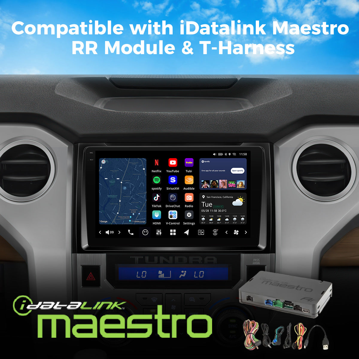 - To retain your vehicle’s factory features, the iDatalink Maestro RR interface and a vehicle-specific T-harness are required (purchased separately).