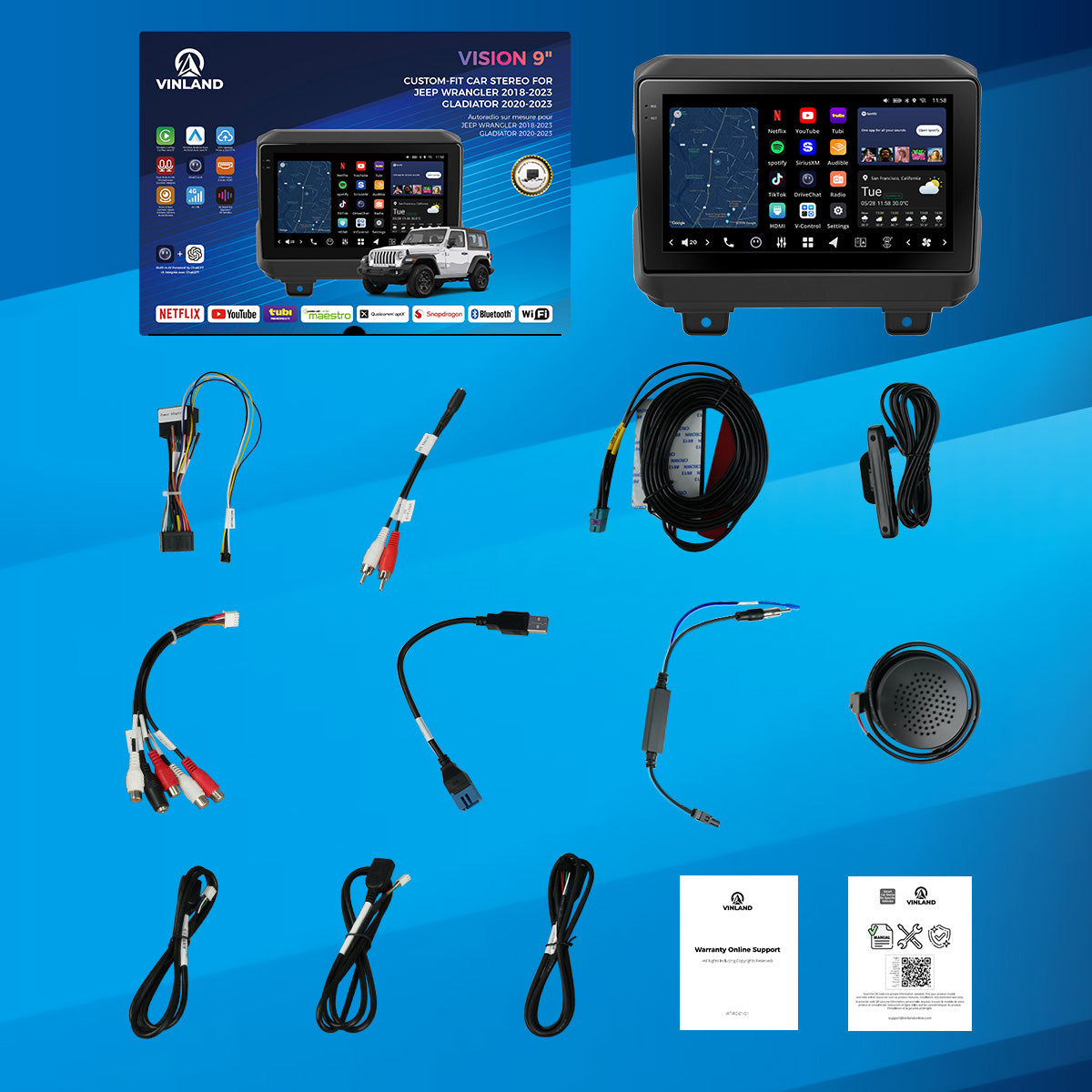 VISION 9" Custom-Fit Car Stereo for Jeep Wrangler (JL) 2018-2023 & Jeep Gladiator (JT) 2020–2023